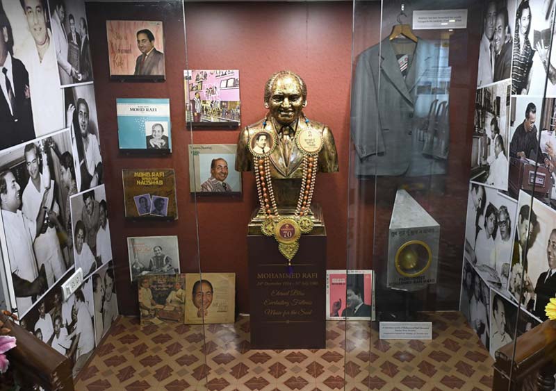 The kiosk features a life size statue of Rafi, a bust, rare photographs of his life and career, and an exhaustive write-up on his achievements and contributions to Indian cinema. The kiosk also allows music lovers to listen to 100 of his memorable songs, along with the details of the composer, the musician, the film and the artistes on whom they were picturised.